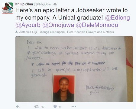 Letter Of Job Application In Nigeria - Man Shares An Application Letter Written By A Female Nigerian Graduate In Abuja 9jaflaver : Before rushing to write an application letter after catching a glimpse of a vacant slot, you need to arm yourself with as much information as possible about the education jobs in nigeria.
